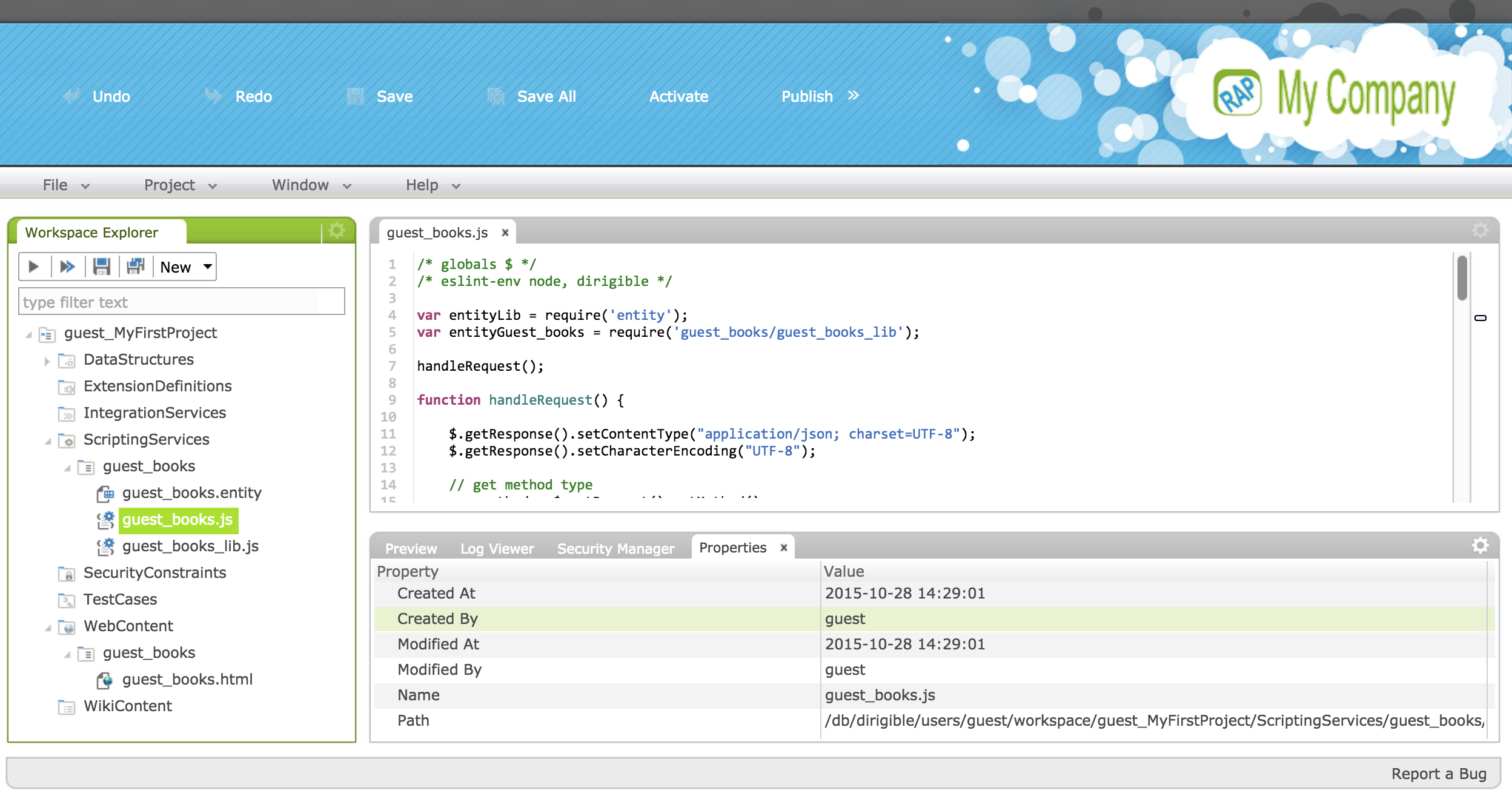 Being a cloud platform provider or development tools provider company, most probably you would like to have your own logo and a name following your products naming convention instead of Dirigible's ones. It is very easy following the Eclipse RAP Branding approach.